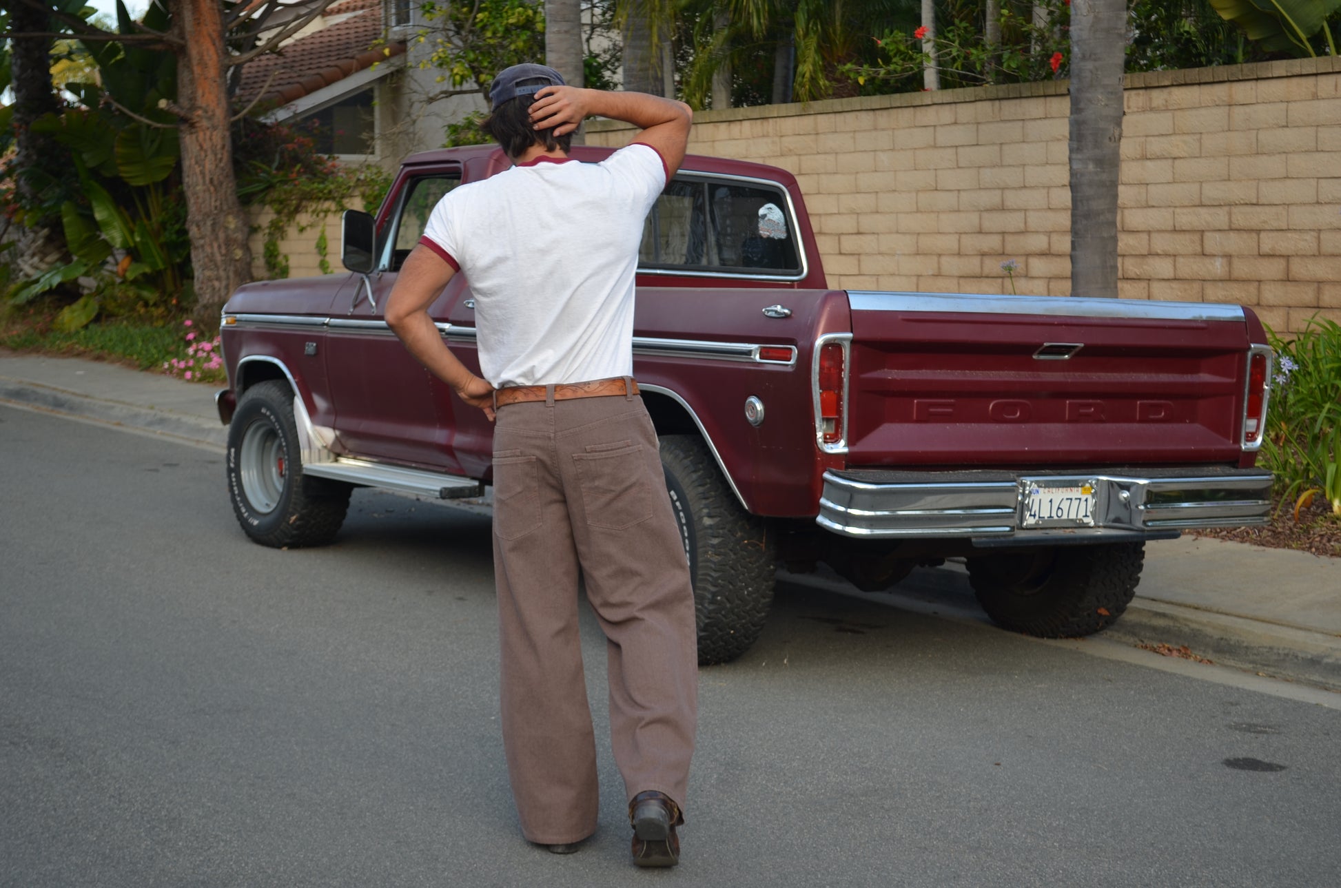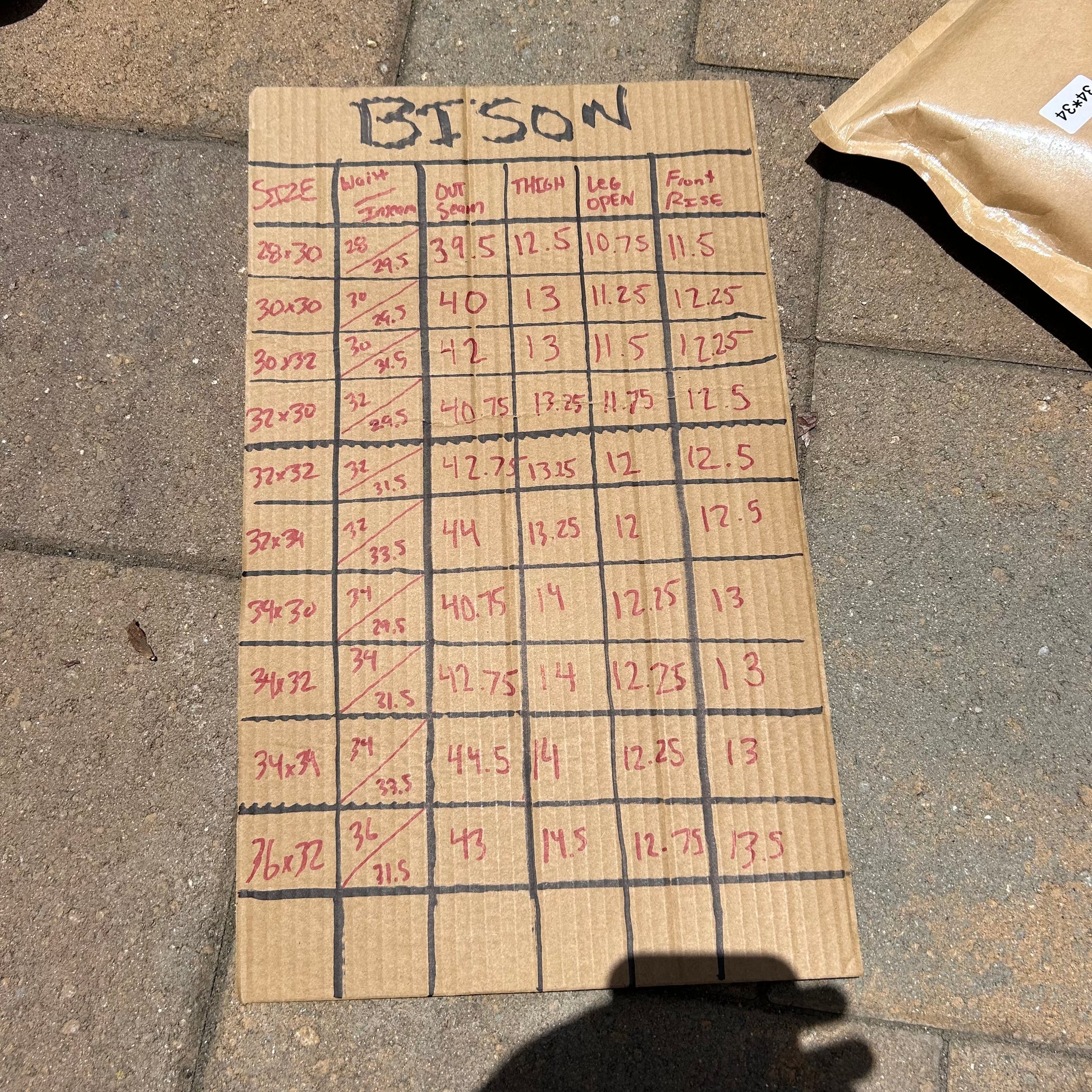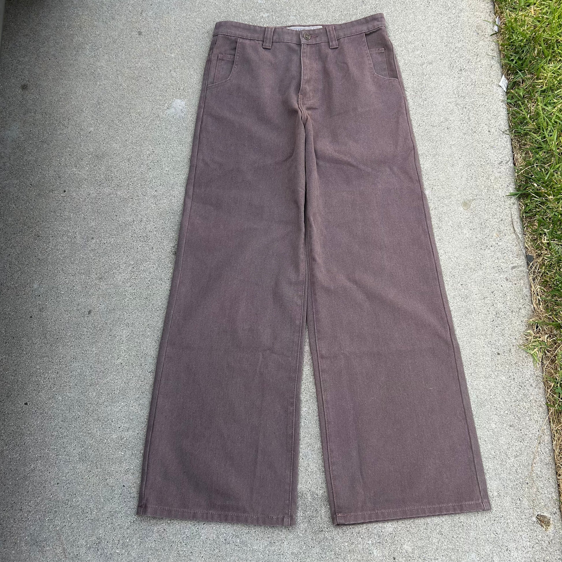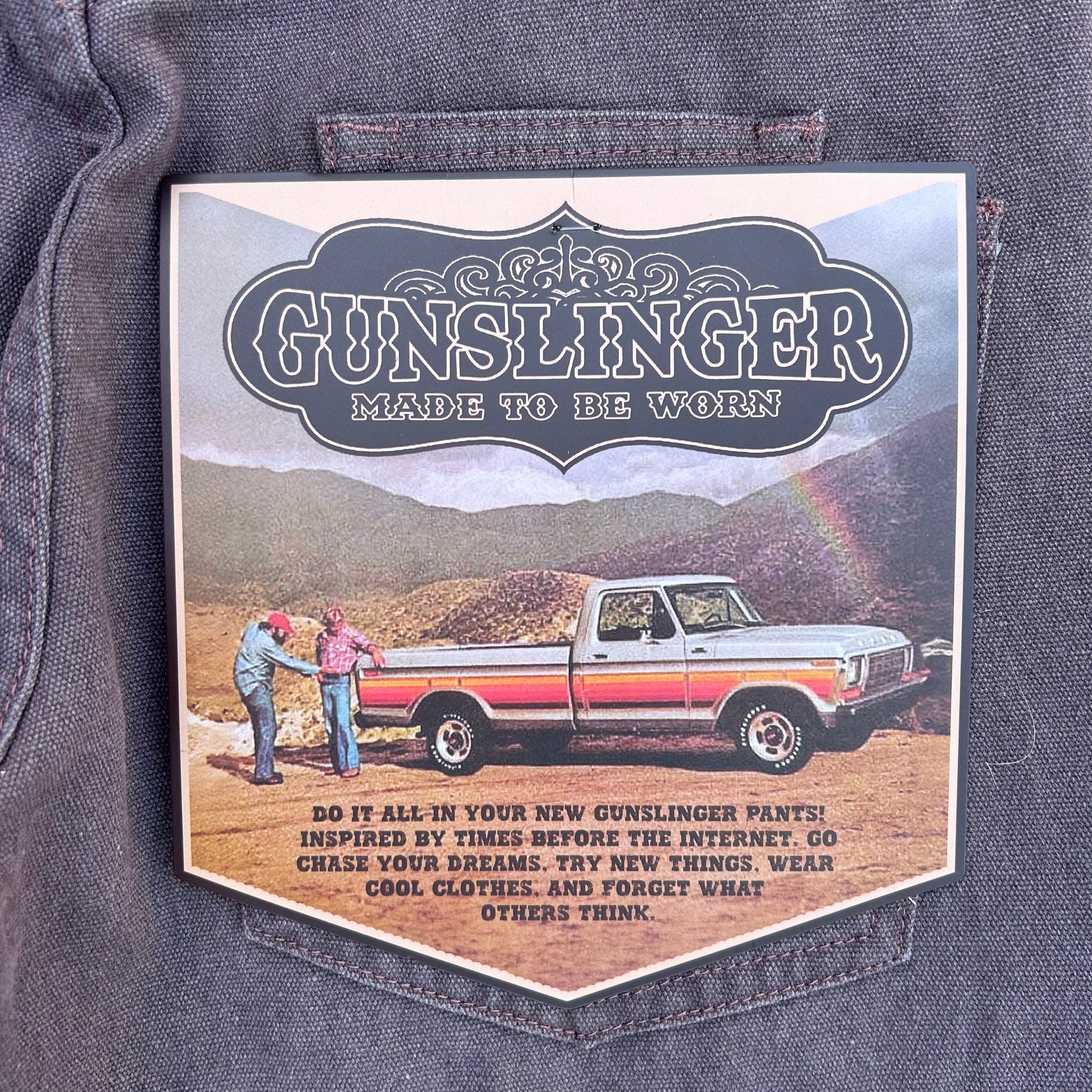 Very informal description as this is my first pant style like this. The Bison name comes from the Animal who lived in north america back in the day. These pants are made for a more a hefty man (like a bison) with some decent legs who wants a nice classy look without running into the issue bellbottoms being made for smaller legs. So depending on how big your legs are they might be more baggy or they might hug your thighs/booty. Obviously they are brown so it works color wise also. The custom back paper tag speaks for itself. Super cool and authentic button. I’d describe the color as a very 70s/80s brown which is what inspired this pant. The material is a mid weight washed canvas which gives it a flowy but durable feel and look. it’s got double pockets which is unique for the time period it hypothetically would come from. i personally love double pockets and sets it apart. double front pockets to match the back! thats the bison!